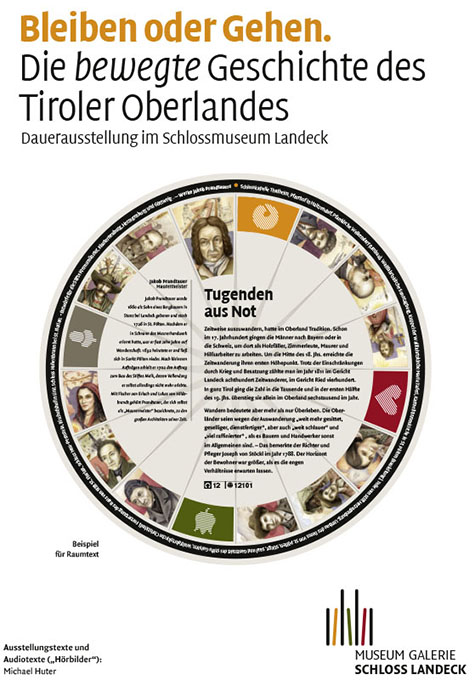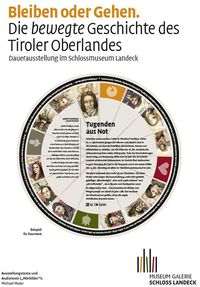 Die Dauerausstellung im Schloss Landeck behandelt die Alltagsgeschichte Westtirols vom Mittelalter bis ins 20. Jahrhundert. Die Spannung zwischen prekärer Sesshaftigkeit und erzwungener Mobilität ist das Thema.